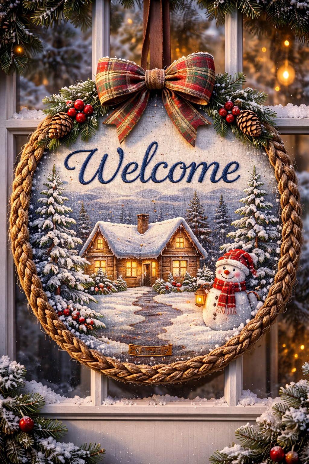 Bring warmth and charm to your home this winter with our handmade embroidered welcome board. Designed with a cozy winter theme, this artwork features detailed embroidery of a snowy cottage, festive greenery, and elegant “Welcome” lettering stitched with care. Crafted using premium fabric and threads, it adds a heartfelt, handcrafted touch to your entrance—perfect for seasonal décor or gifting.